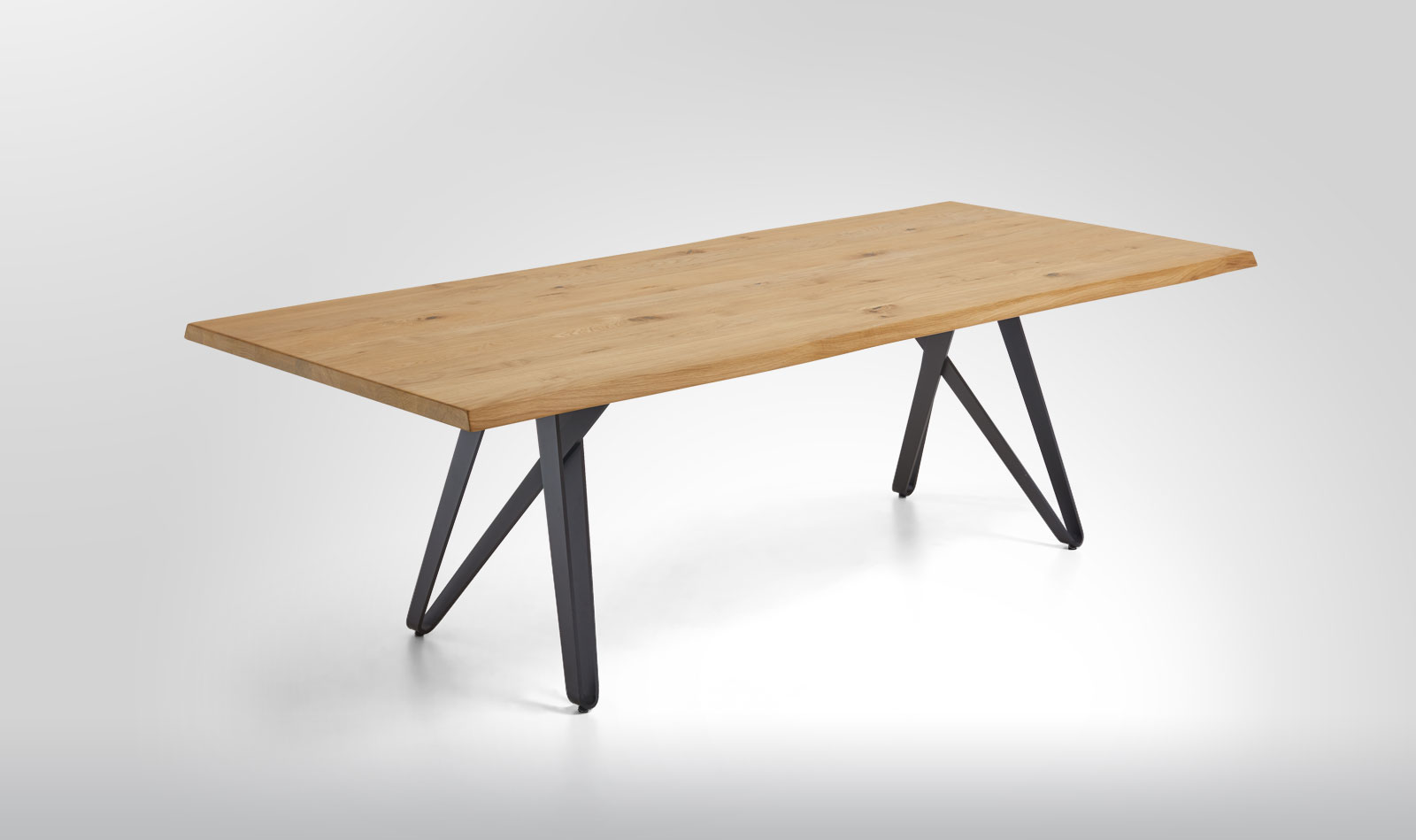 Tischplatte mit Baumkantenopitk, alternativ auch mit gerader Plattenkante möglich (s. ET586).