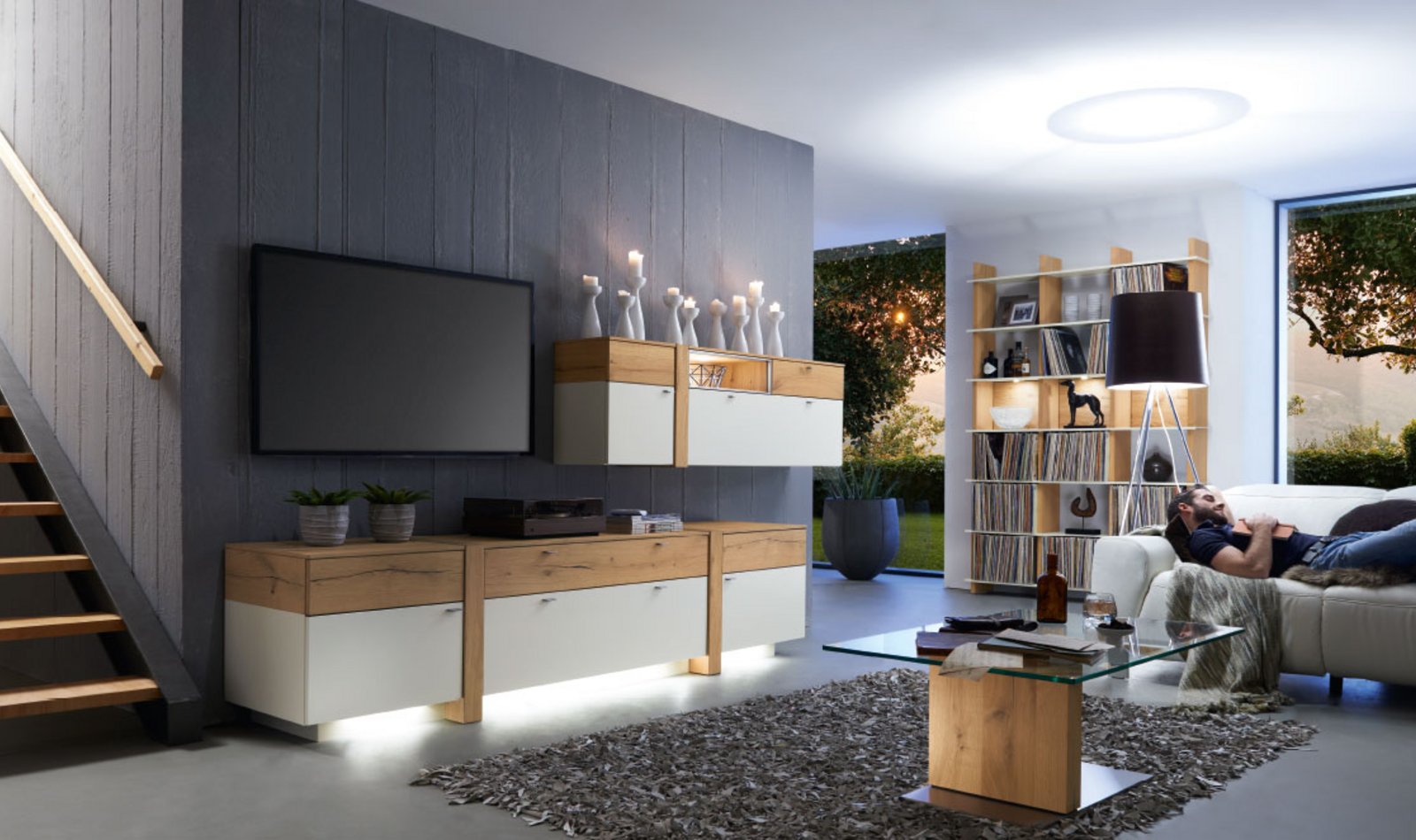 ALBERO trägt die Finessen modernen Möbeldesigns in Wohn- und Esszimmer. Die horizontalen Fronten des Programms werden durch vertikale Holz-Elemente elegant gegliedert – der Standsockel ist unter dem Korpus leicht zurückversetzt. So erhalten Sideboards, Vitrinen und Wohnwände einen schwebenden Charakter. Möbeldesign mit einem besonderen Kniff – ALBERO wird Sie über viele Jahre begeistern!