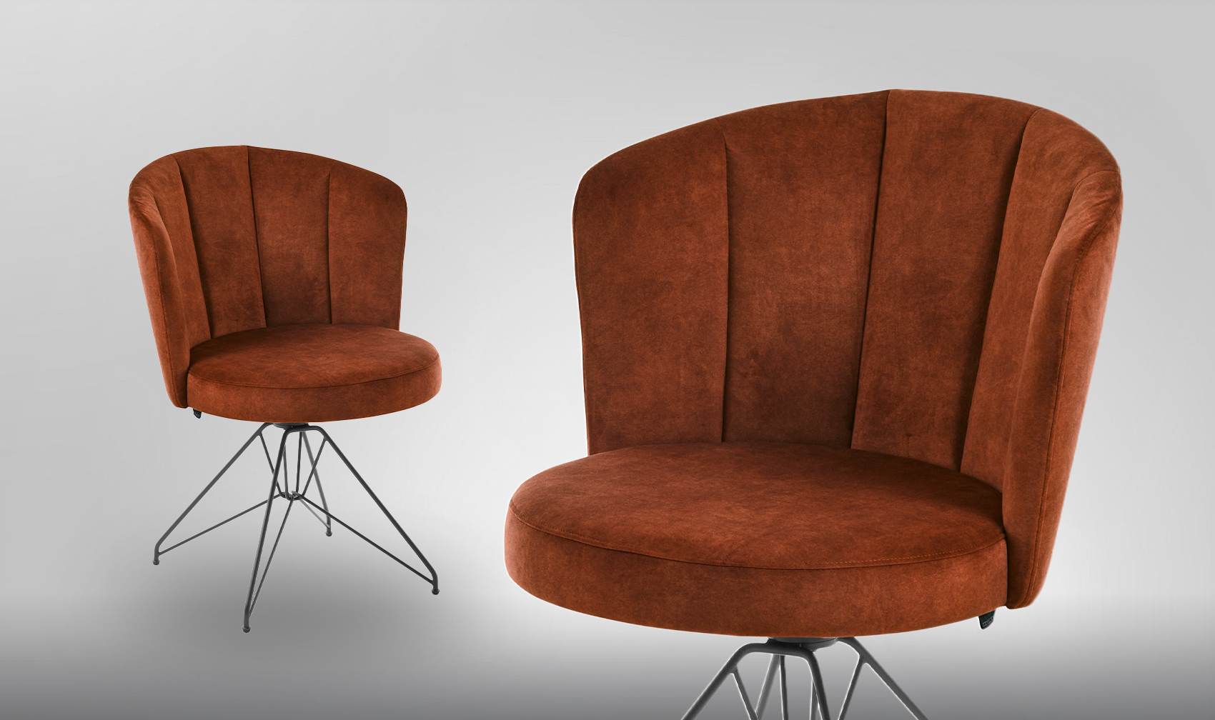 Lieferbar mit Stoff- und Leder-Bezügen. Optional mit Drehfunktion und/oder Schwingfunktion.