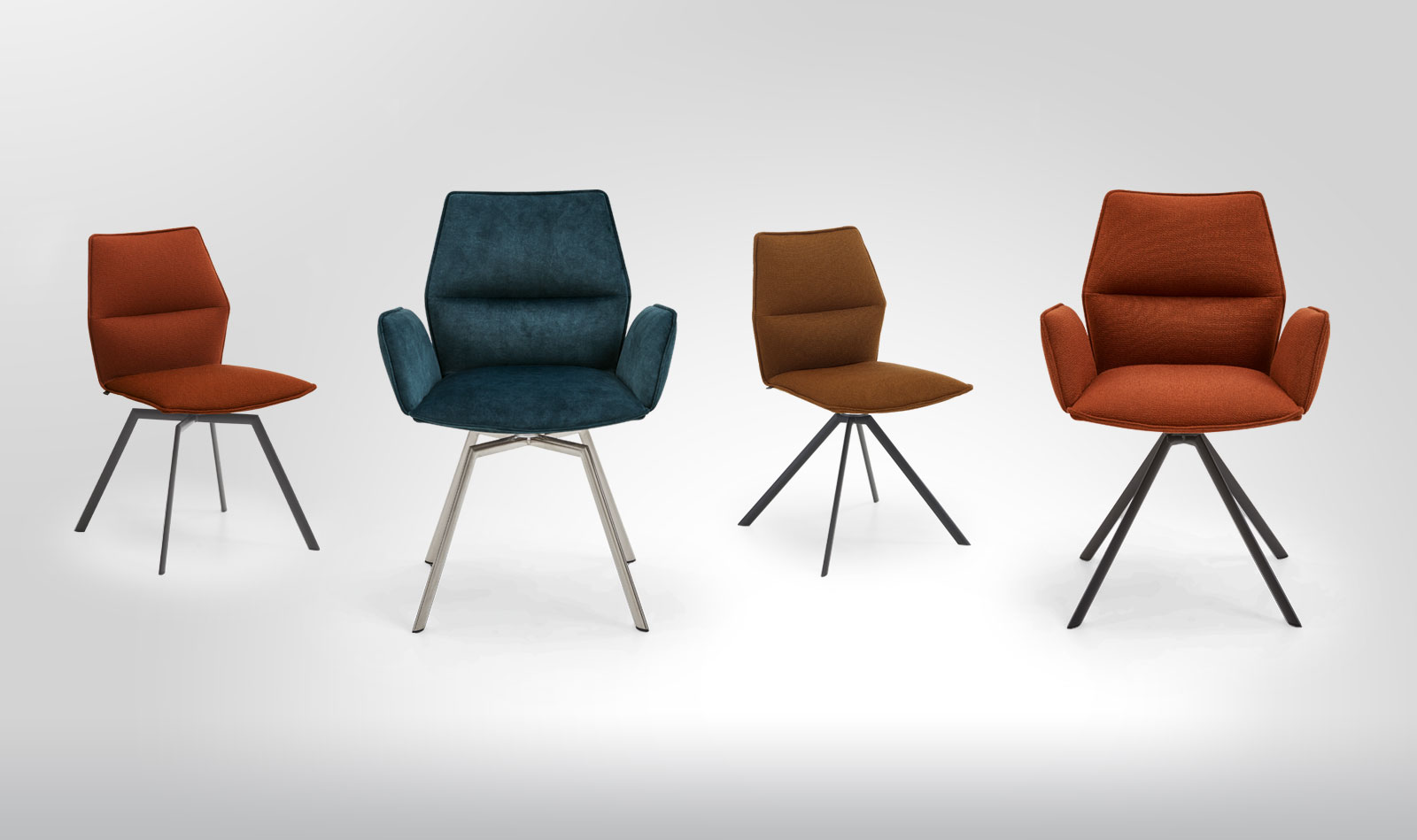 Wählen Sie bei Carola zwischen 5 Gestellvarianten. Optional mit praktischer 360-Grad-Dreh- und automatischer Rückholfunktion in die Ausgangsposition.