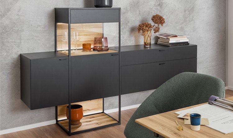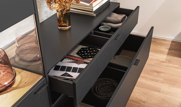 Die neue Kultur des Wohnens nimmt sich Zeit: Auch für Design. PLAN X6 zeigt dabei Klasse – auf die moderne Art. Das Besondere dabei sind die Metallelemente, die Oberflächen in Lack anthrazit matt oder Lack kristallweiß matt, die einen spannenden Kontrast zum natürlichen Holz bilden. X6 lässt Sie frei kombinieren – wenn Sie möchten. Viele Kombinationen und Solitärmöbel, wie zum Beispiel Sideboards, Highboards oder Vitrinen stehen zur Verfügung. Am Ende entscheiden nur zwei: Sie und Ihr Geschmack.